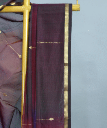 Hot chocolate – Wine Maheshwari Pure Handloom Silk Dual Shaded Diamond Butti Cotton Saree