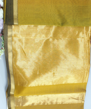 Light Moss Green Maheshwari Pure Handloom Silk Full Big Border Cotton Saree