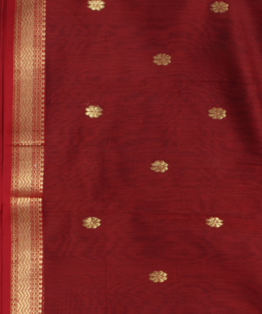 Maroon Maheshwari Pure Handloom Silk Multi-Butti Small Border Cotton Saree