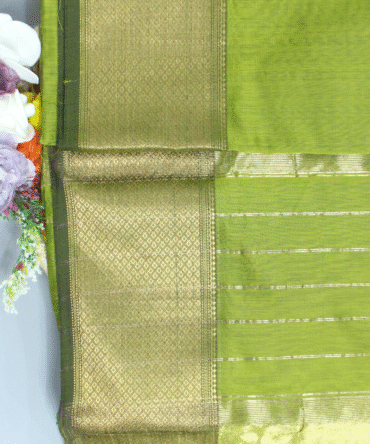Olieve Green Maheshwari Pure Handloom Silk Cotton Saree