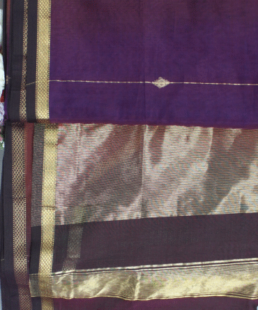 Purple Maheshwari Pure Handloom Silk Cotton Kora Palla Saree