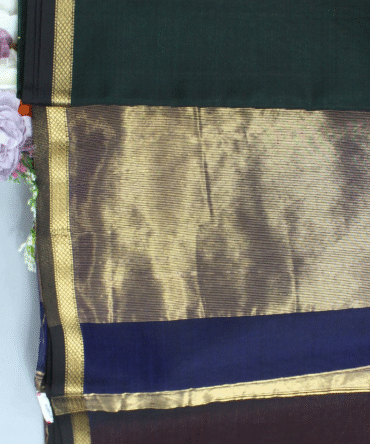 Navy Blue – Green Maheshwari Pure Handloom Silk Dual Shaded Diamond Butti Cotton Saree