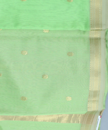 Pista Green Maheshwari Pure Handloom Silk Multi-Butti Small Border Cotton Saree
