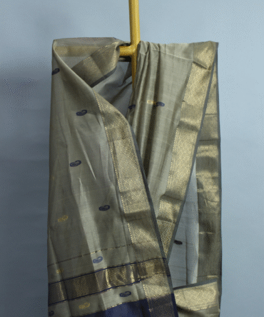 Navy Blue Maheshwari Pure Handloom Silk Jari-Neer Cotton Saree