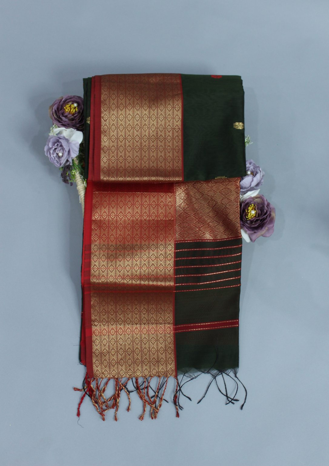 Black Maheshwari Pure Handloom Silk Cotton Saree