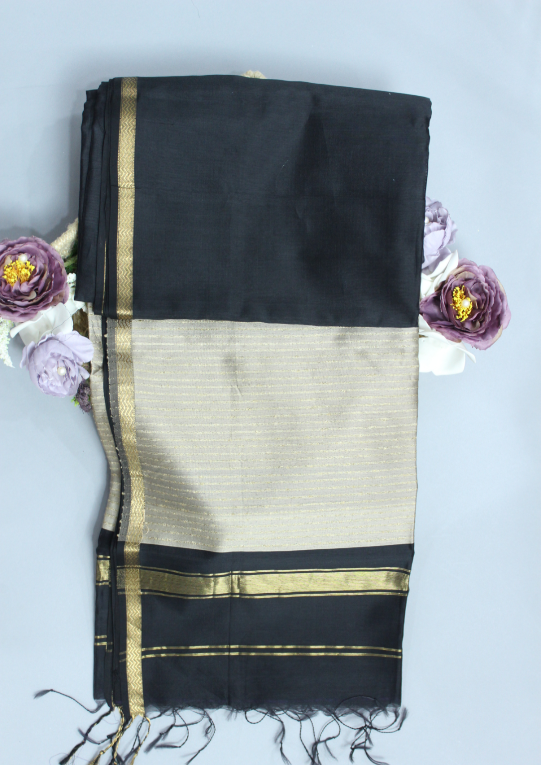 Black Maheshwari Pure Handloom Silk Cotton Saree