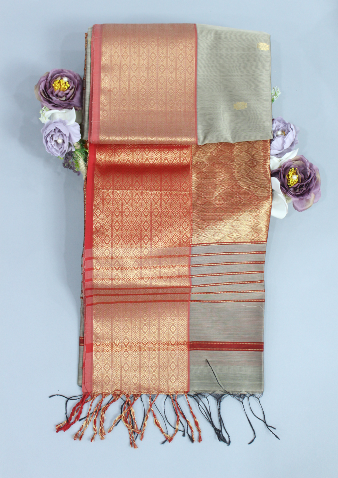 Clay Maheshwari Pure Handloom Silk-Cotton Saree, featuring refined weaving and a soothing clay-hued palette. Its understated elegance and traditional craftsmanship make it ideal for festive occasions and sophisticated gatherings