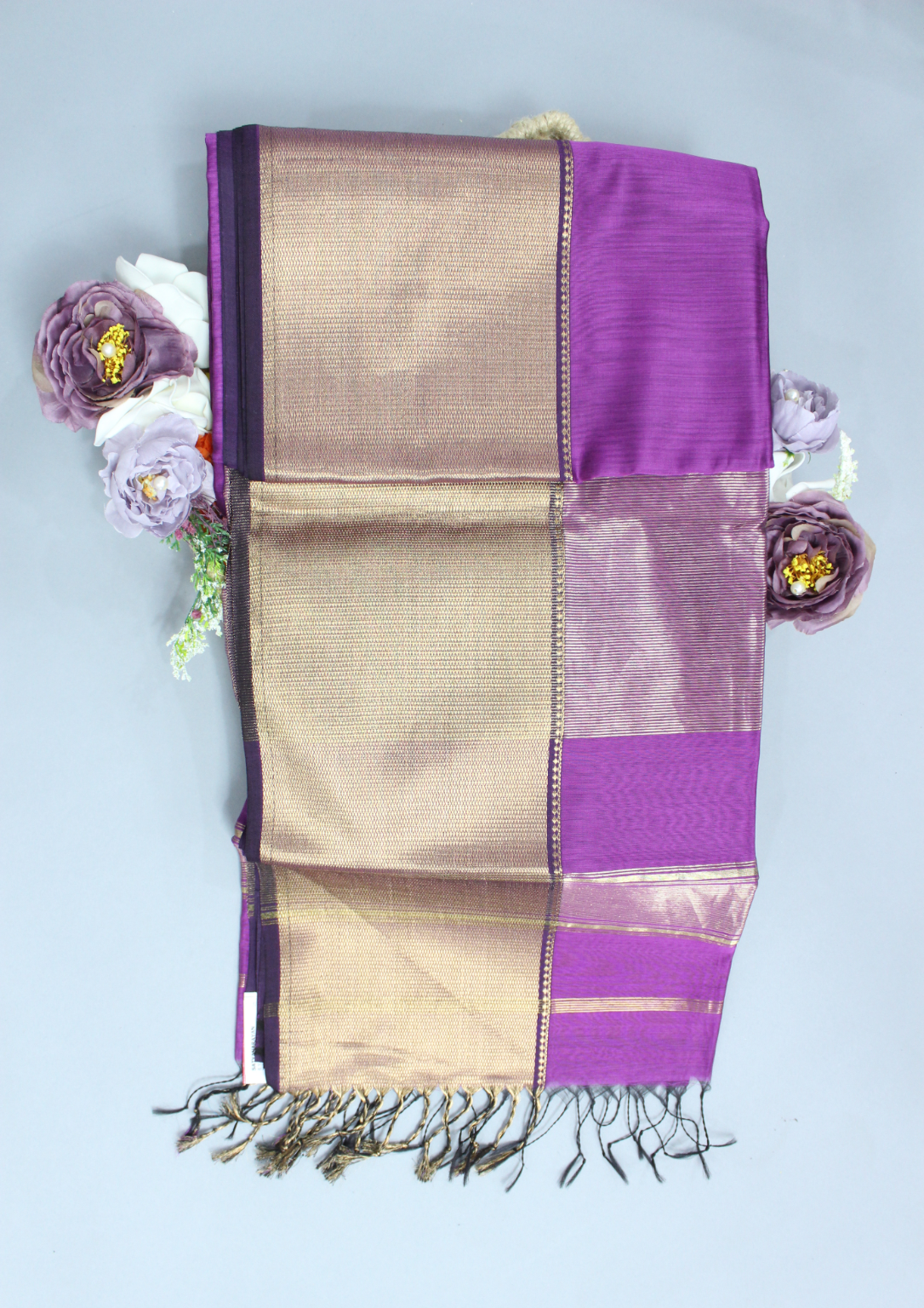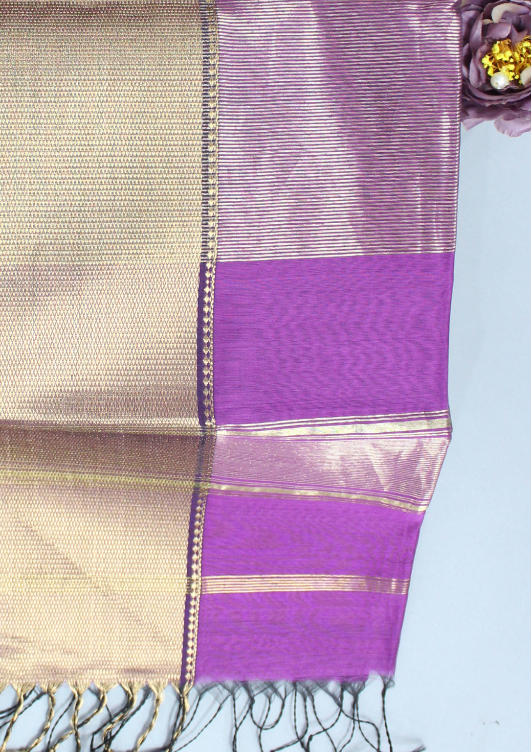 Purple Maheshwari Pure Handloom Silk Full Big Border Cotton Saree