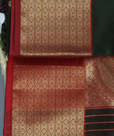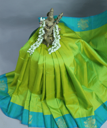Contrast Parrot Green Fancy Kanchi Pure Handloom Side Butta Lines Saree