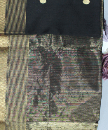 Black Maheshwari Pure Handloom Silk Circle Butti Cotton Saree